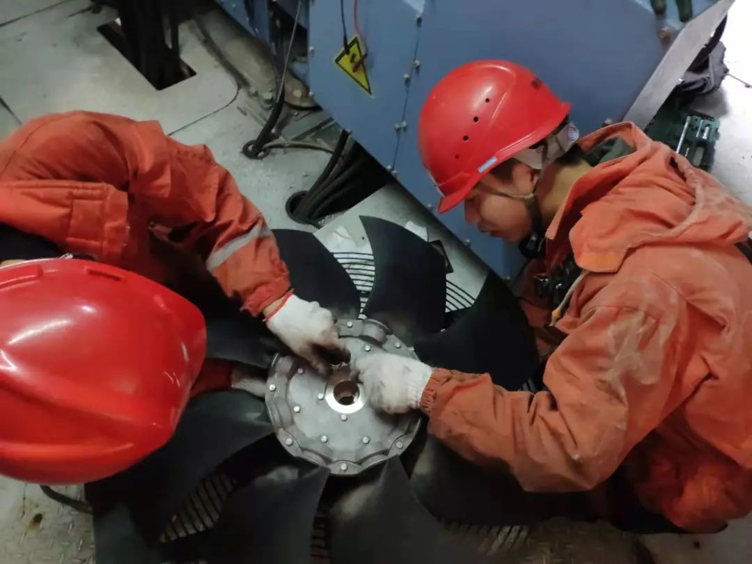 臨近春節(jié),運(yùn)行人員林正杰帶領(lǐng)班組成員例行巡檢,這時(shí)監(jiān)控主機(jī)報(bào)警顯示9號(hào)風(fēng)機(jī)液壓油位低、系統(tǒng)壓力低故障,經(jīng)現(xiàn)場(chǎng)排查后判定為高速閘漏油?!翱赡苁敲芊馊匣瘜?dǎo)致漏油,我們要馬上進(jìn)行搶修”只見林正杰說(shuō)完,轉(zhuǎn)身沖向設(shè)備間方向,攜帶特定維修工具與運(yùn)行班組驅(qū)車前往故障點(diǎn)。