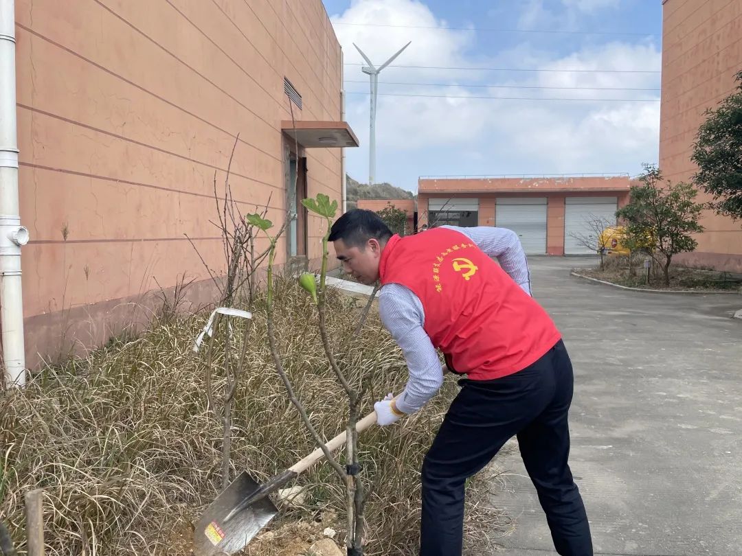 線下,能源公司的黨工團志愿者們帶上樹苗、扛起鋤頭,奔赴平陽西灣及蒼南霞關(guān)兩個風(fēng)電場,在暖陽下,挖坑、栽樹、壓土、澆水...... 各個環(huán)節(jié)銜接有序,配合默契,認真地完成每一道工序,一棵棵新苗就穩(wěn)穩(wěn)地在土里扎下了根,為風(fēng)電場的春天又增添了一抹新綠。